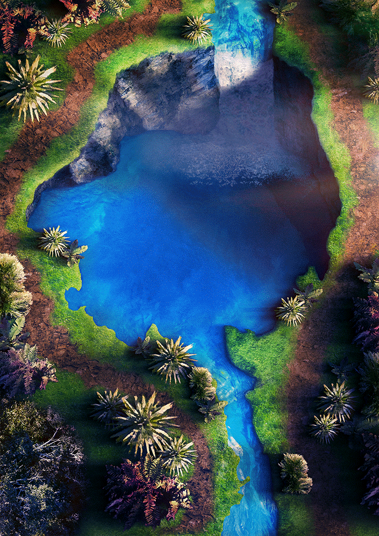 Feeling the land beneath her feet for the first time, Ila knelt to be closer to it. She ran her hands over the dirt, enamoured with the texture, and as she pushed and pulled, she sculpted the land creating mountains, chasms, hills, and trenches.